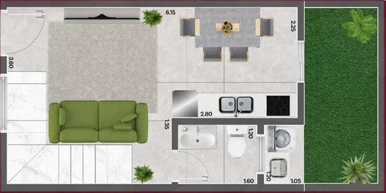 - 50m² com 2 dormitórios - isoladas